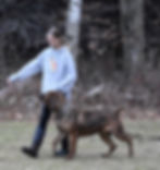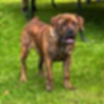 Milly has just a wonderful temperament and probably our biggest "leaner", she has zero idea of her size! Milly has a lot of volume, but very balanced for a taller female. Color is the last thing we worry about here when making breeding choices but you cant help to LOVE her deep rich red brindle pattern!